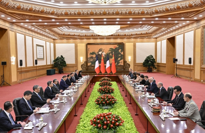 习近平强调,无论外部环境如何变化,中法两国都应当始终展现大国的战略眼光和独立自主,在彼此核心利益和重大关切问题上相互理解和支持,维护好中法关系的政治基础。中共二十届四中全会审议通过“十五五”规划建议,为未来5年中国发展擘画蓝图,也向世界提供了一份“机遇清单”。中法两国要抓住机遇,拓展合作空间,巩固航空、航天、核能等传统领域合作,挖掘绿色经济、数字经济、生物医药、人工智能、新能源等领域合作潜力。中方愿进口更多法国优质产品,欢迎更多法国企业来华发展,也希望法方为中国企业提供公平环境和稳定预期。中法两国人民有着天然亲近感,要深化文化、教育、科技、地方等领域交流合作,续写人文交流精彩篇章。