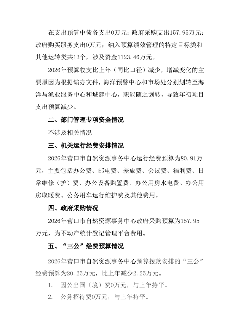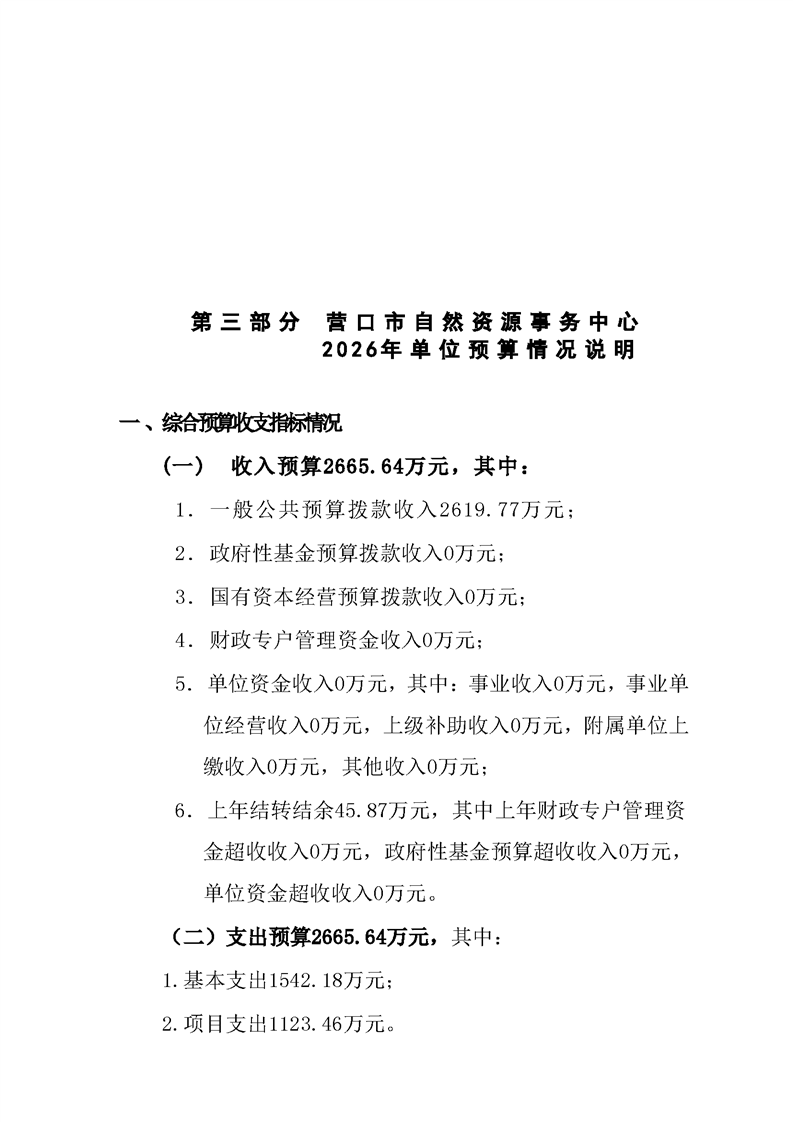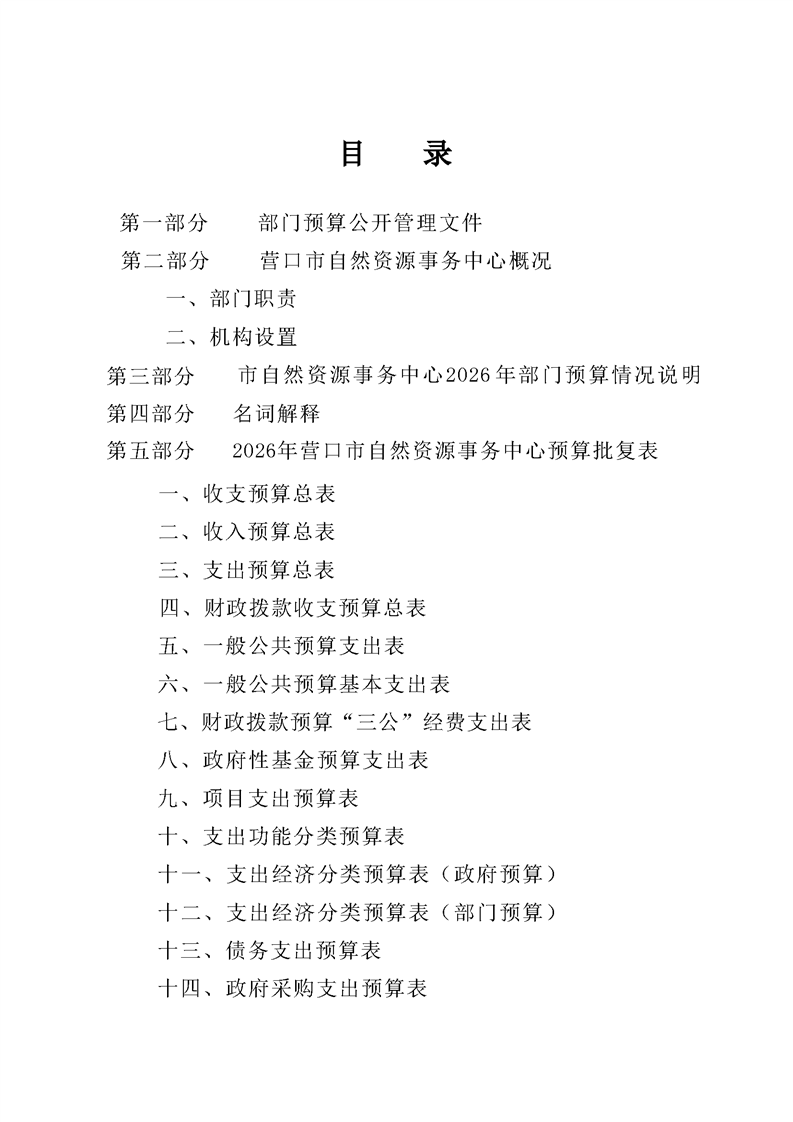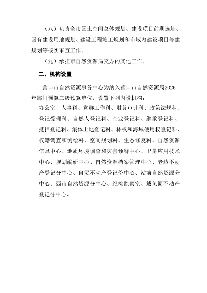 营口市自然资源事务中心2026年度单位预算