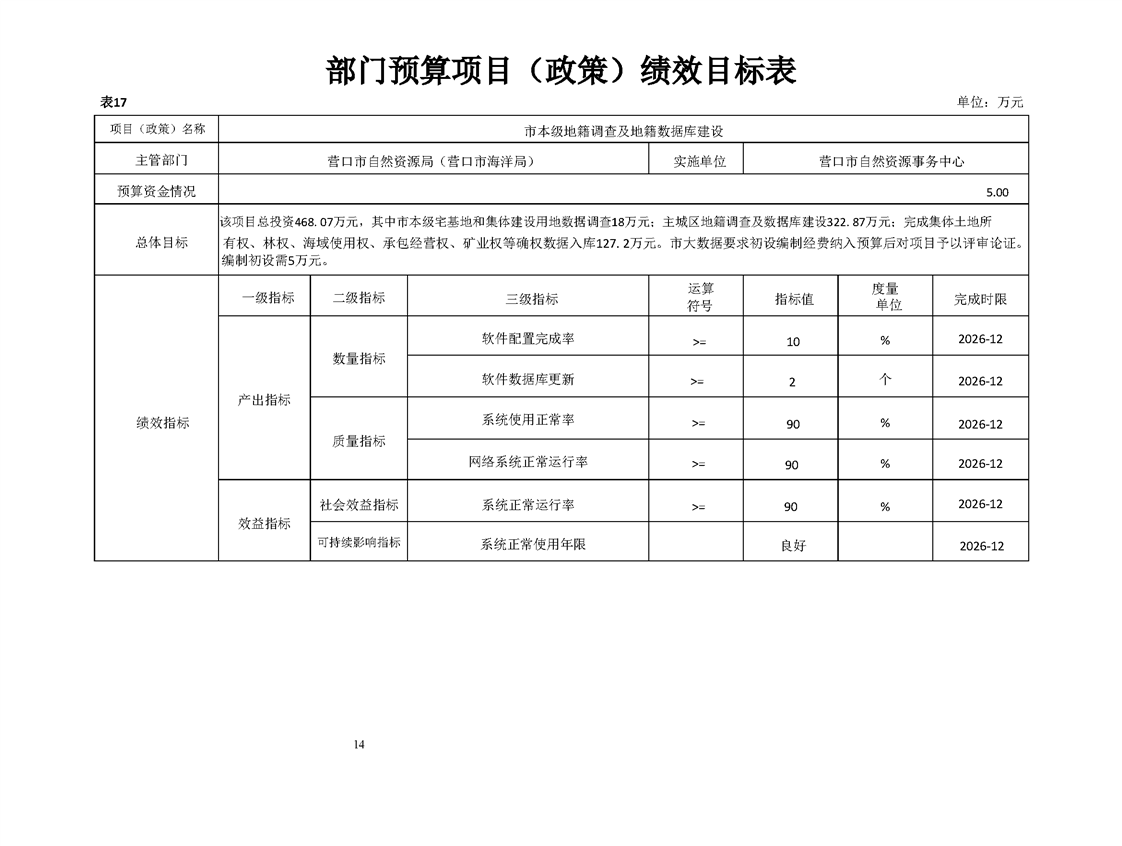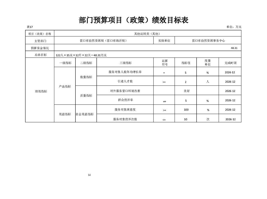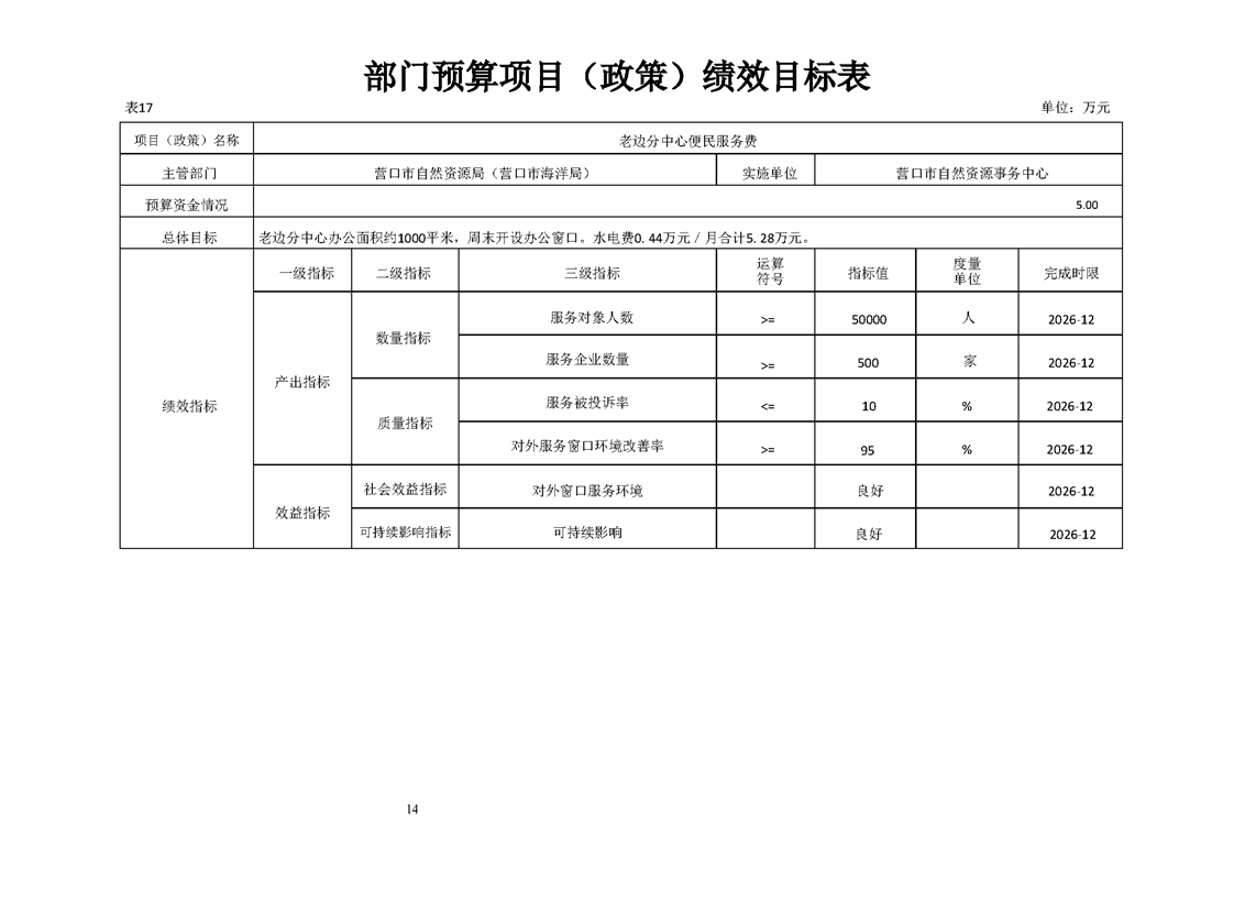 营口市自然资源事务中心2026年度单位预算